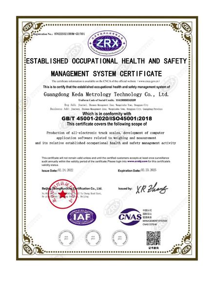 Πρότυπο: | GB/T 45001-2020/ISO45001:2018 |